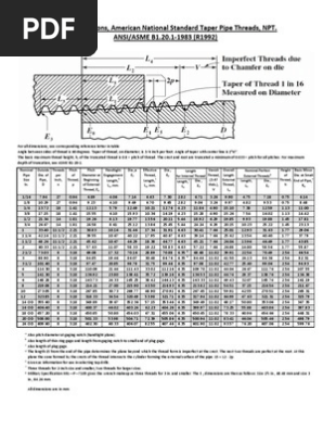 American national standard taper pipe thread npt chart note. The dimensions of the npt thread are given to four or five decimal places.